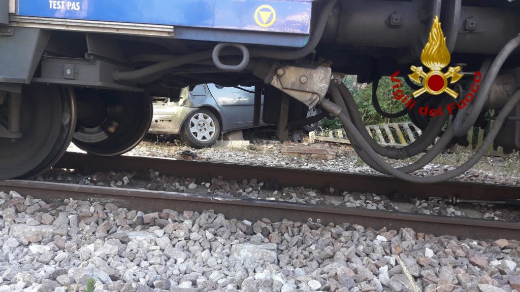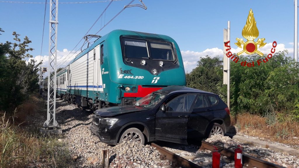 Tamponati da una Bmw, auto e scooter spinti sulle rotaie: travolti da un treno