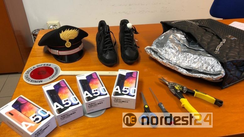 Gli agenti, una volta arrivati sul posto, hanno trovato all'interno della borsa 4 Smartphone appena sottratti al punto vendita.