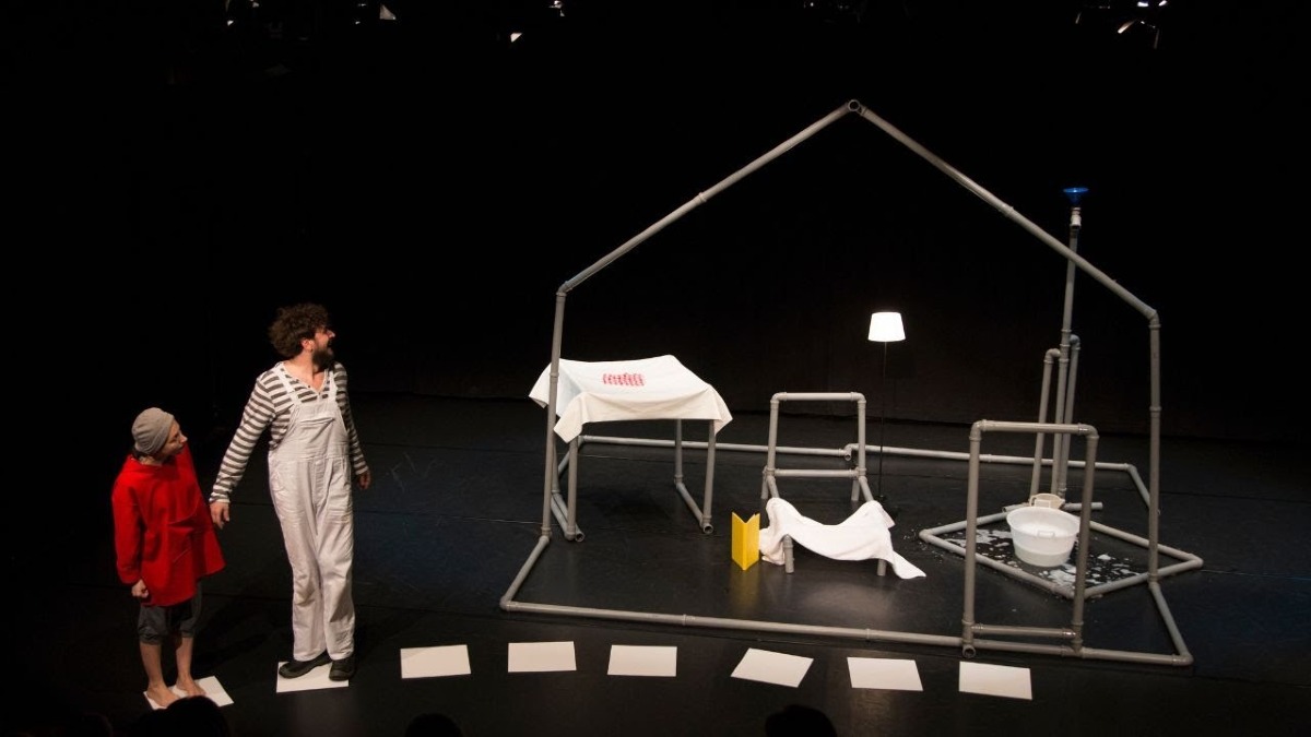 Il minimalismo scenico sfrutta ed esalta la bravura degli attori (Michele Onori / Andrea Buzzetti, Erika Salamone / Carlotta Zini) e la narrazione, che si costruisce costruendo la struttura della casa. Prodotto dalla compagnia La Baracca – Testoni con la regia di Bruno Cappagli, lo spettacolo ha vinto premi internazionali come l’Early Years Award.