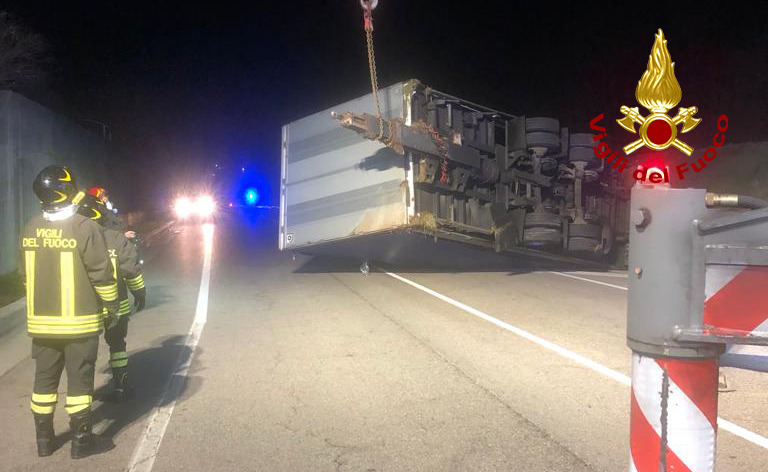Poco prima delle ore 21 di venerdì i vigili del fuoco sono intervenuti in via Maestri del Lavoro a Schio in provincia di Vicenza per il rovesciamento del rimorchio di un camion distaccatosi durante una brusca manovra dell’autista per evitare un altro veicolo: nessuna persona è rimasta ferita.