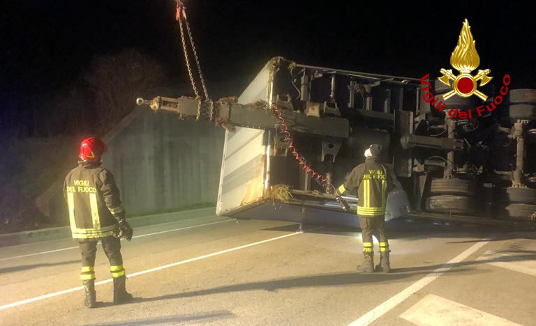 Tenta di evitare un altro veicolo e si rovescia il rimorchio del camion