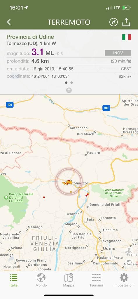 Nuova scossa di terremoto con epicentro a Tolmezzo oggi alle 15:40 con magnitudo 3.1 e profondità di 4.6 chilometri.