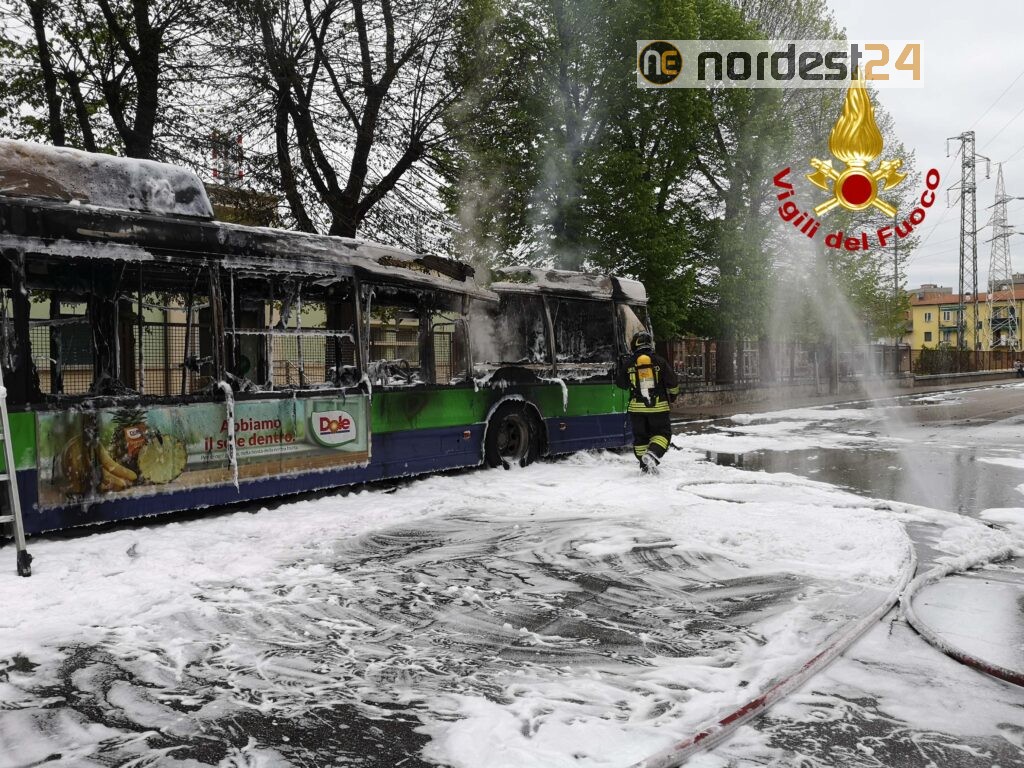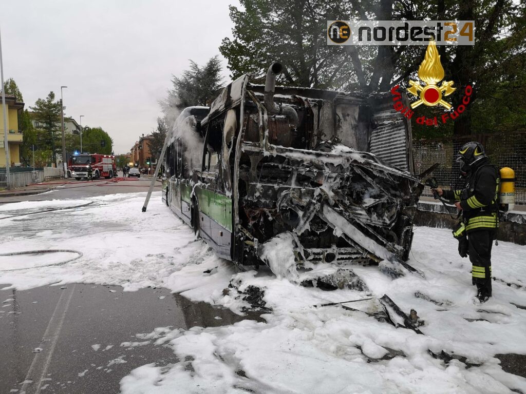 Le operazioni di estinzione e completo raffreddamento del bus sono durate circa due ore.