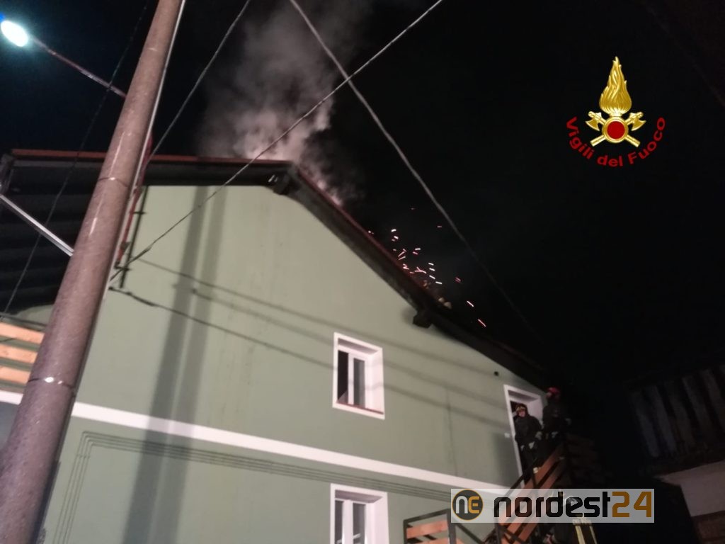 Tetto e mansarda a fuoco nella notte: nessun ferito
