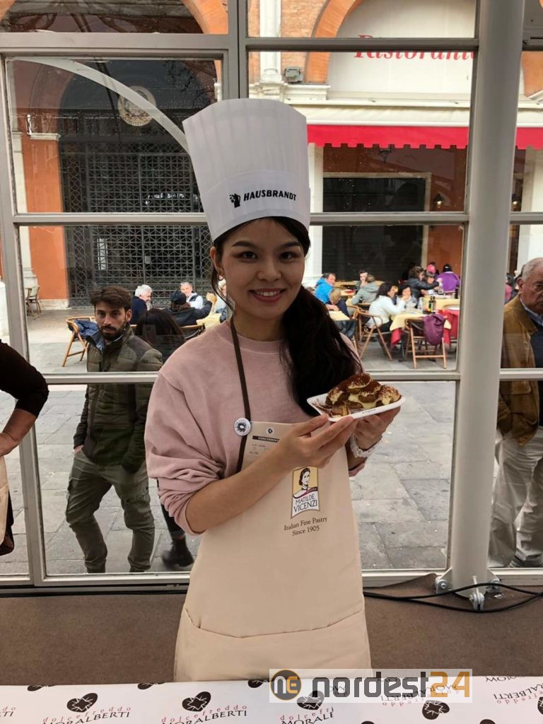 La Tiramisù World Cup è nuovamente nel cuore della Marca a regalare entusiasmo e passione per il dolce italiano più popolare al mondo. Per una concorrente cinese (in foto, Luo Feng) che non è però riuscita ad accedere alle semifinali, tre concorrenti hanno invece staccato il biglietto per le semifinali sia nella ricetta creativa che in quella originali: Silvia Zanini di Pieve di Soligo e Sara Arrigoni di Bergamo, Giuseppe Franco di Pordenone.