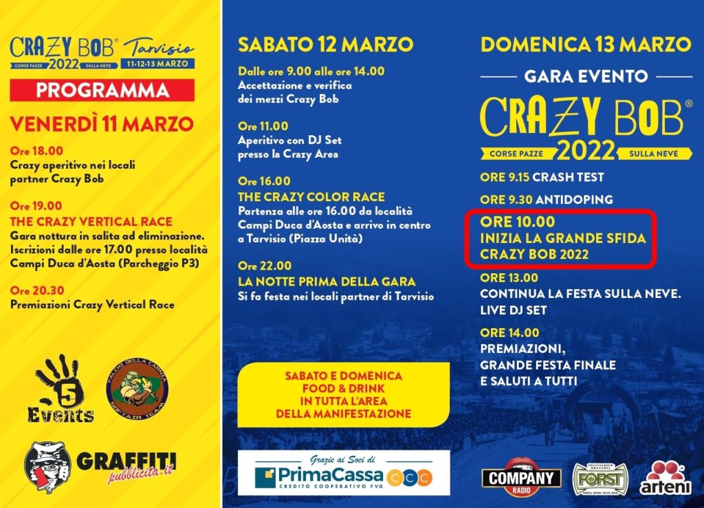 Due anni fa, nel Marzo 2020, fu l’ultimo grande evento del Friuli Venezia Giulia in ordine di tempo ad essere stato annullato causa Covid. Ora, nel fine settimana dell’11-12-13 Marzo 2022, sarà il primo a ripartire. La Crazy Bob scalda i motori ed è pronta a guidare la ripartenza del divertimento collettivo, sempre con il massimo e puntuale rispetto delle normative vigenti per il contenimento del contagio.