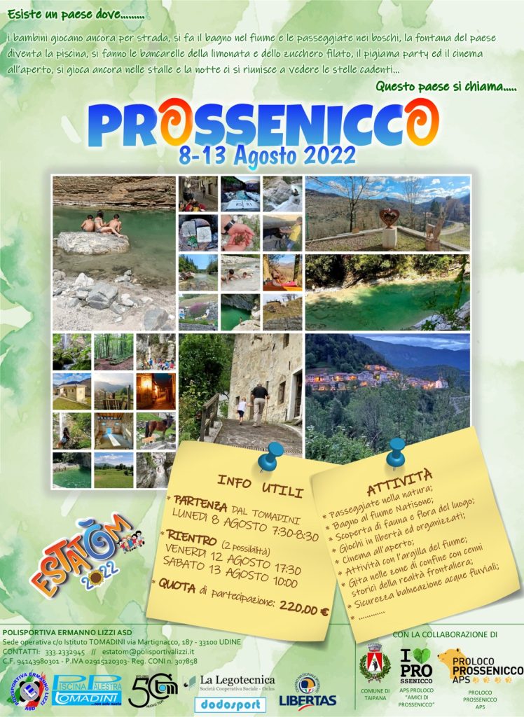 Quali, quindi, le proposte di questa settimana di intenso divertimento e conoscenza? Storia e natura la faranno da padrona; i bambini andranno a scoprire la flora e la fauna del luogo, senza dimenticare i percorsi e le passeggiate di confine che racconteranno uno spaccato della realtà frontaliera. Il fiume Natisone, poi, sarà il fulcro di molte attività: dal classico e divertente bagno, fino alla lavorazione dell'argilla, passando per la consapevolezza della sicurezza della balneazione in acque fluviali. Non dimentichiamo, poi, la possibilità di giocare all'aperto e di condividere le esperienze vissute in giornata. Ci sarà anche il cinema all'aperto, anche se tutte le sere Prossenicco offre uno dei più belli spettacoli della natura: il cielo stellato in tutta la sua interezza e luminosità, un altra opportunità per imparare e scoprire.