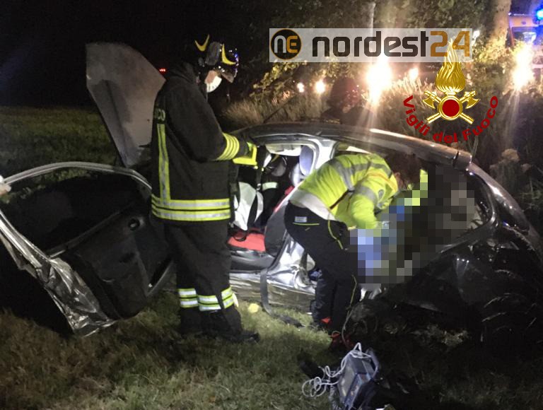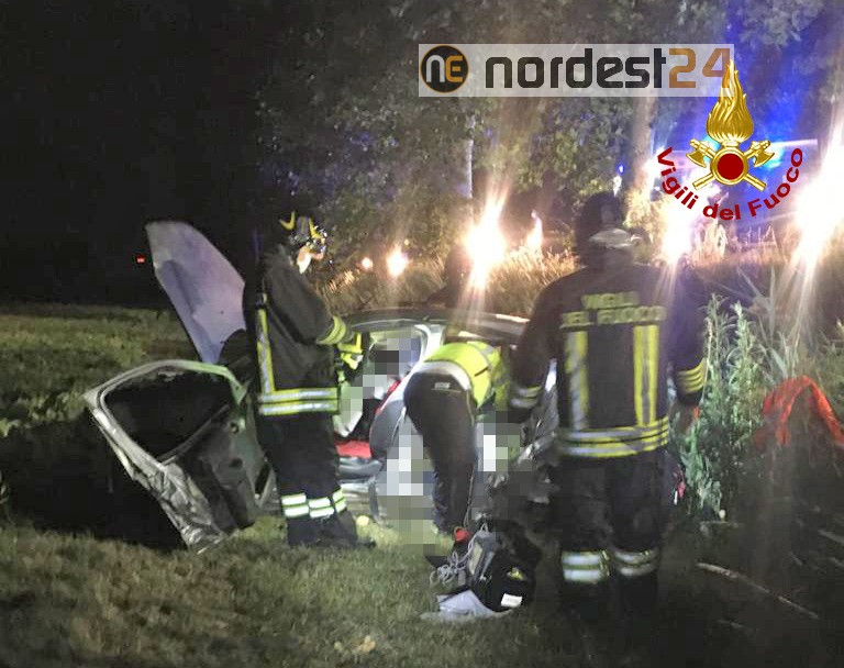 Poco dopo le 23:00 di mercoledì, i vigili del fuoco sono intervenuti in Via Fausta lungo la jesolana a Lugugnana di Portogruaro per un’auto finita fuori strada sotto il piano stradale: 26enne deceduto, grave una donna, il figlio piccolo e una ragazza di 15 anni.