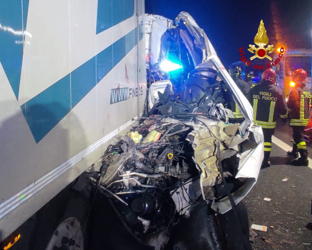 Tragedia in A4, furgone tampona mezzo pesante: un morto e un ferito grave