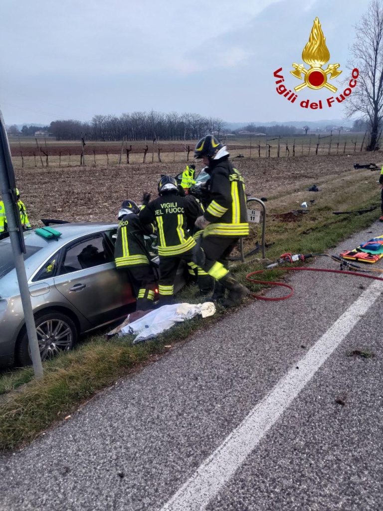 SERNAGLIA DELLA BATTAGLIA – Tragico incidente con un morto e due feriti oggi pomeriggio, domenica 20 febbraio 2022, a Sernaglia della Battaglia in provincia di Treviso in via Massarole. L'impatto è av...