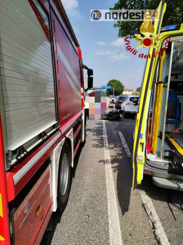Dopo la chiamata al numero dell' emergenza sono giunti sul posto gli operatori sanitari a bordo dell'elicottero del SUEM 118. Nonostante i tentativi di rianimazione hanno dovuto constatare il decesso della passeggera della due ruote, una Trevigiana di 52 anni.