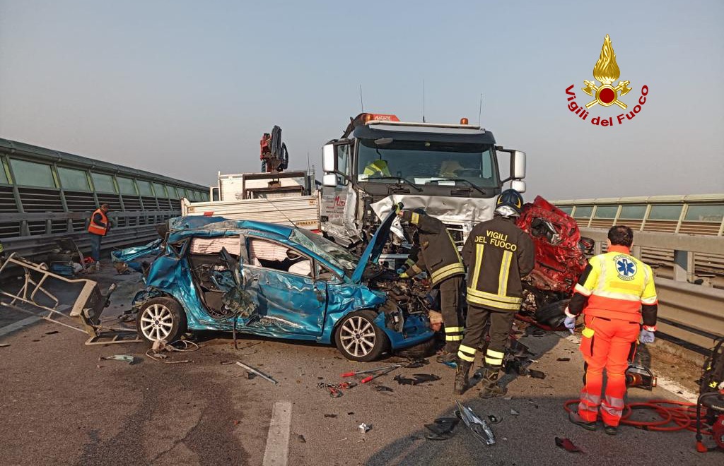 PADOVA. Alle 8:50, di oggi lunedì, i vigili del fuoco sono intervenuti in Via I Maggio all’altezza dello svincolo di Salboro lungo la tangenziale a Padova per un incidente tra due mezzi pesanti e due autovetture: deceduta una donna, 3 feriti.