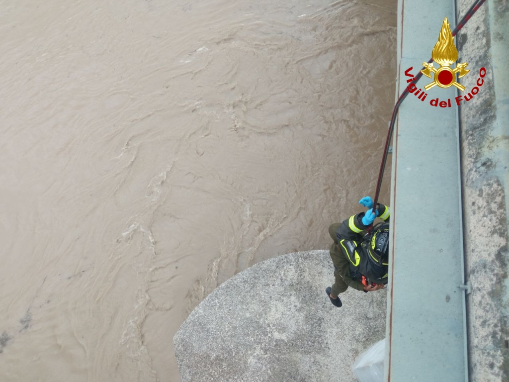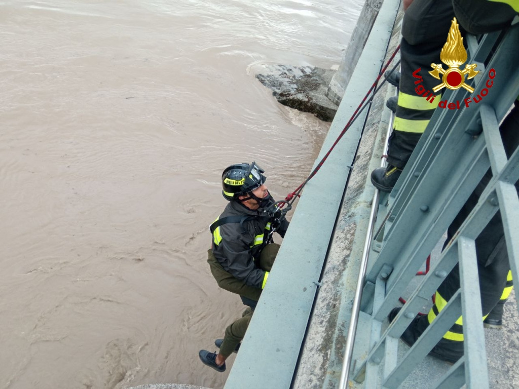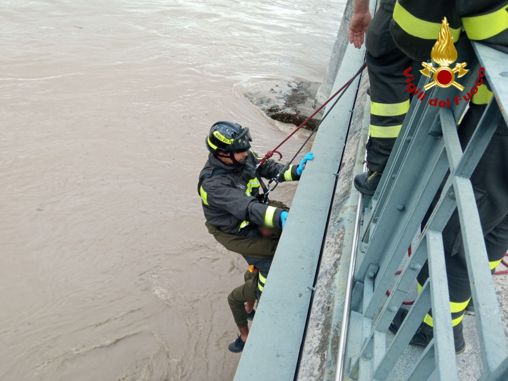Tratto in salvo il 35enne bloccato sul pilone del ponte dopo la piena