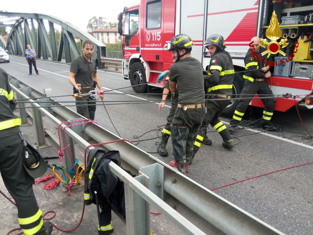 I Vigili del fuoco giunti sul posto hanno individuato l’uomo, uno straniero di 35 anni, e dopo aver valutato la situazione hanno deciso di recuperare la persona issandola sul ponte con tecniche di derivazione speleo alpinistica. Dopo aver preparato la manovra di “calata e recupero” un vigile del fuoco è stato calato dal ponte fino a raggiungere l’uomo in pericolo che è stato imbragato e poi, assieme al soccorritore, è stato issato fino a raggiungere il piano stradale.