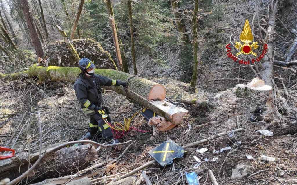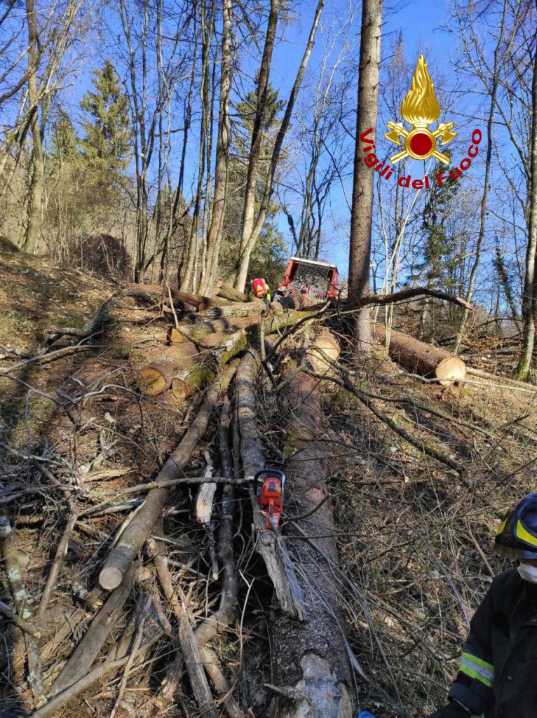 SOSPIROLO. Poco dopo le 11:30, di sabato, i vigili del fuoco sono intervenuti in località Maras nel comune di Sospirolo in provincia di Belluno per soccorrere un uomo rimasto intrappolato con un arto sotto una pianta, durante i lavori di taglio della stessa. I pompieri arrivati con più mezzi, si sono portati in prossimità del bosco per un sentiero molto stretto a bordo di due fuoristrada, raggiungendo l’infortunato.