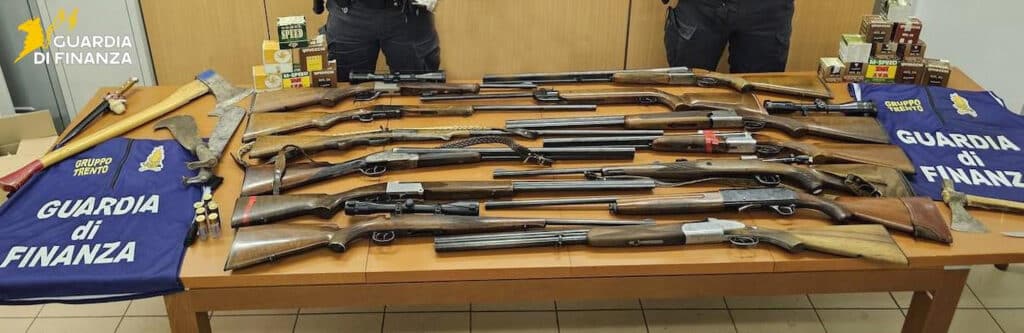Successivamente, nella perquisizione domiciliare, sono stati sequestrati 22 fucili, un pugnale, circa 1500 munizioni e 4 kg di polvere da sparo.