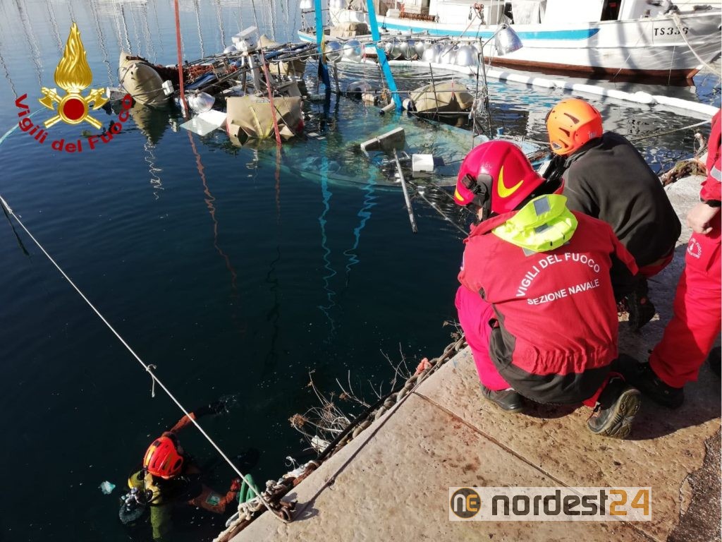 TRIESTE. Nella giornata odierna, giovedì 24 gennaio, i Vigili del fuoco del Comando di Trieste, su richiesta e coordinamento della Capitaneria di Porto, sono intervenuti sul Molo Venezia a Trieste, per il recupero di un peschereccio di stazza prossima alle 13 tonnellate affondato all’ormeggio.