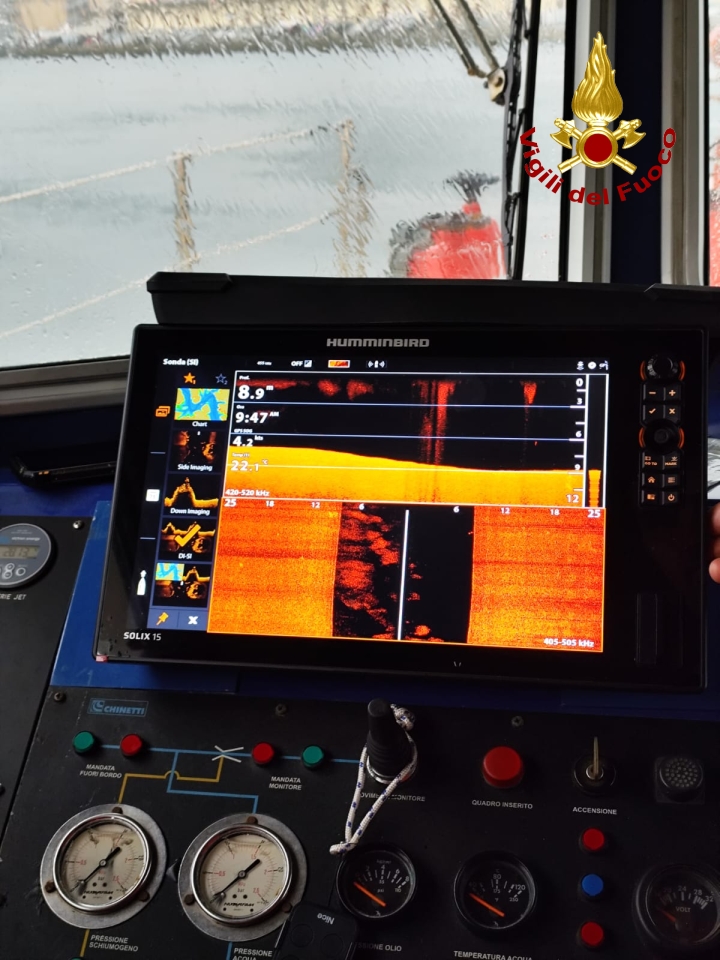 I Vigili del Fuoco hanno scandagliato l'area compresa tra il molo terzo, il molo quarto, la diga vecchia e la sacchetta. La motobarca degli specialisti nautici ha percorso una griglia dell'area, scandagliando il fondale con uno scan sonar e utilizzando un ROV. Contemporaneamente, i sommozzatori del Nucleo di Soccorso Subacqueo Acquatico si sono immersi per perlustrare il fondale con tecniche di ricerca sistematica a tappeto.