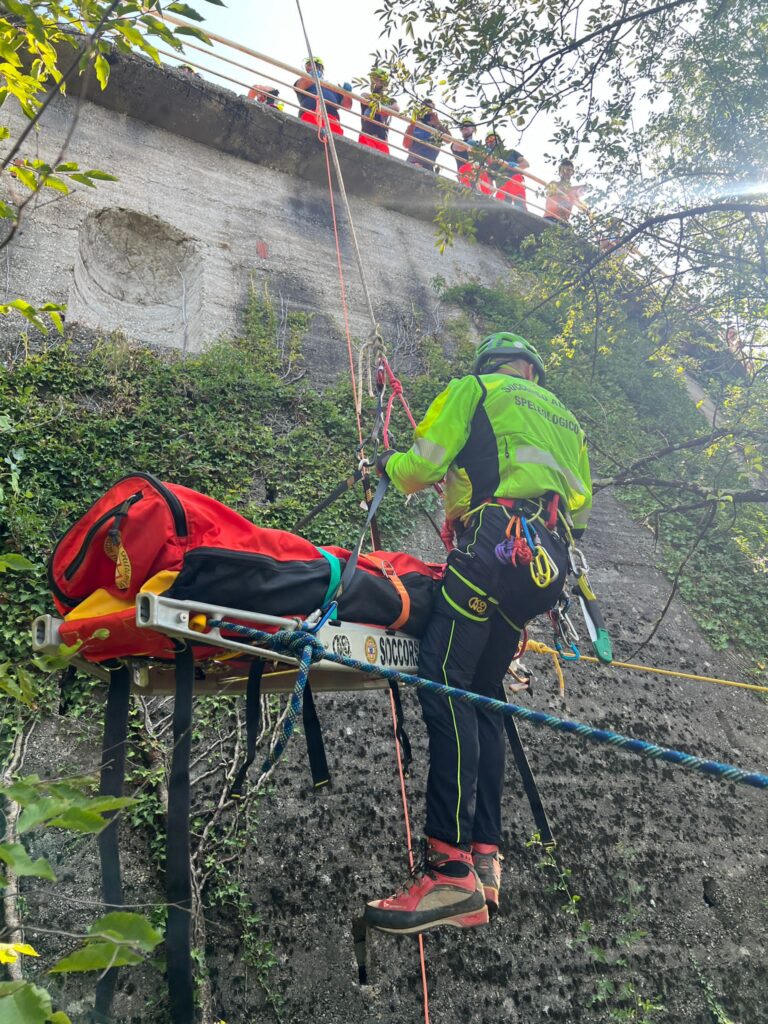 Gli esperti del Soccorso Alpino hanno calato una squadra direttamente sul luogo dell'incidente utilizzando corde e una barella speciale. Una volta stabilizzata e imbarellata, la donna, che ha riportato una frattura alla caviglia e un trauma toracico, è stata sollevata al bordo strada grazie all'autoscala dei Vigili del Fuoco.