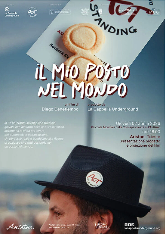 TRIESTE - Il 2 aprile è la Giornata Mondiale della Consapevolezza sull’Autismo, istituita nel 2007 dall’ONU, per sensibilizzare sulla condizione di chi vive con un disturbo dello spettro autistico. La Cappella Underground propone un evento davvero speciale, per contribuire con un racconto concreto all’importante messaggio: giovedì 2 aprile, alle 18, al Cinema Ariston di Trieste si terrà in prima assoluta la proiezione de Il mio posto nel mondo, il nuovo film di Diego Cenetiempo dedicato al progetto AUTstanding – La Sosta Inclusiva.