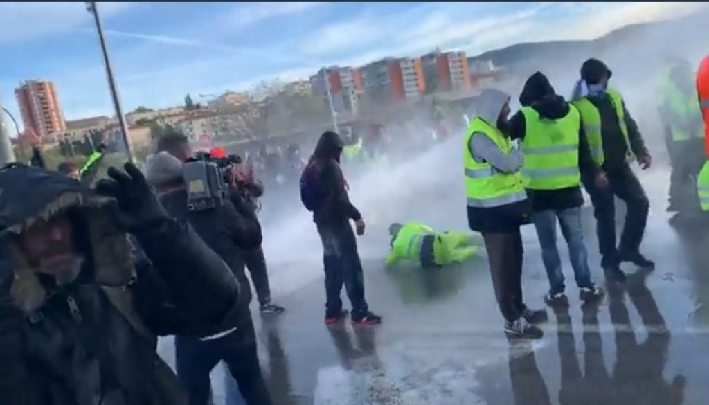 I poliziotti sono scesi dai mezzi in tenuta antisommossa, un funzionario li ha più volte invitati a disperdersi "in nome della legge" poi sono stati azionati gli idranti.