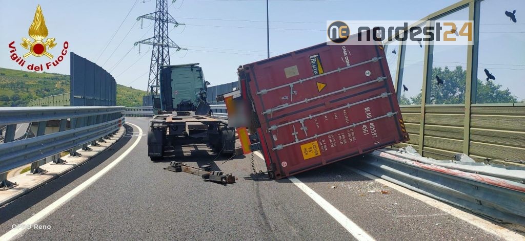 Trieste. Si ribalta il rimorchio di un Tir sulla S.S 202, altezza della Grandi Motori