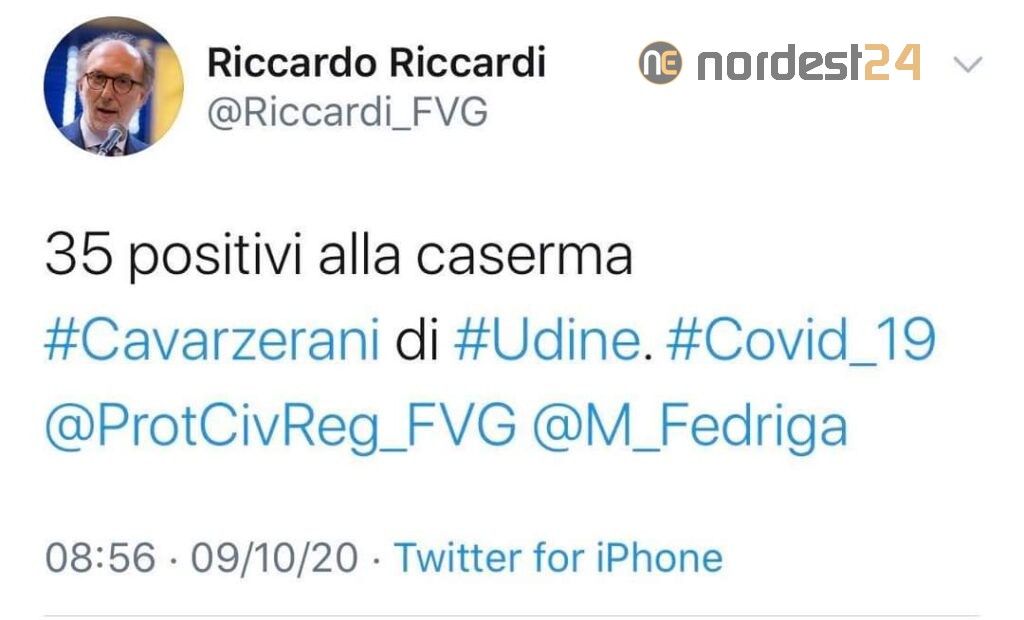 Lo annuncia il vice governatore della regione Friuli Venezia Giulia Riccardo Riccardi dopo aver visionato i referti dei tamponi eseguiti in questi giorni.