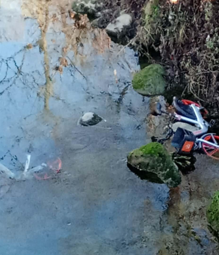 Bici elettriche del bike sharing comunale gettate nel torrente Cormor: segnalazione e foto del lettore Tiziano Grattoni.