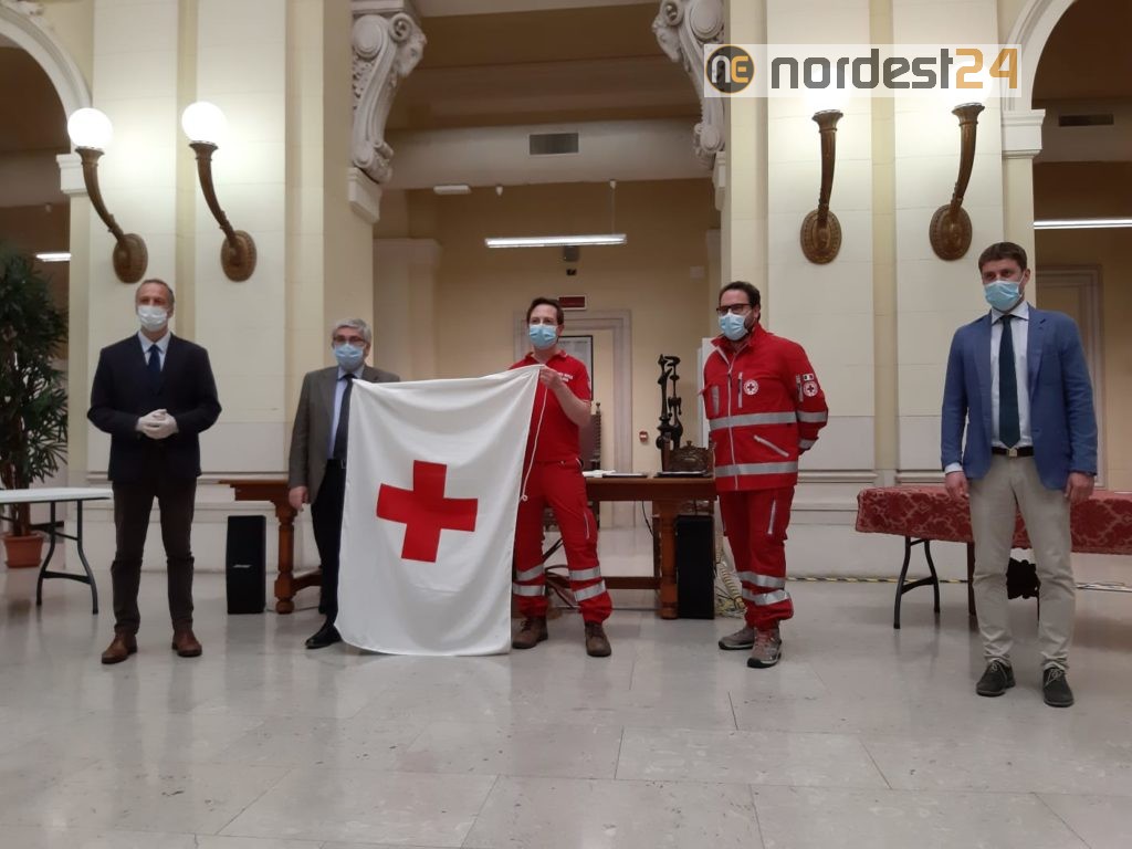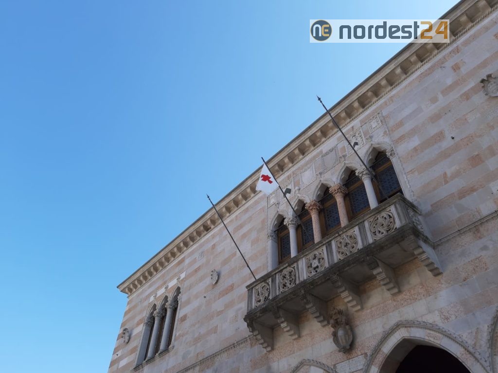 Udine. Giornata mondiale Croce Rossa: bandiera esposta sulla Loggia del Lionello