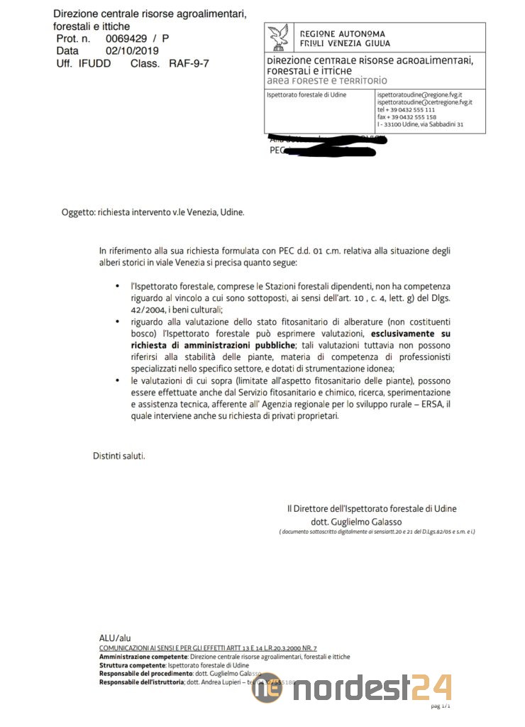 UDINE. Giù le mani dai platani! Gli alberi di viale Venezia sono soggetti a tutela storica, visto il viale napoleonico è un viale storico (d.lgs 4/2004). A ribadire la storicità e l'annessa salvaguard...