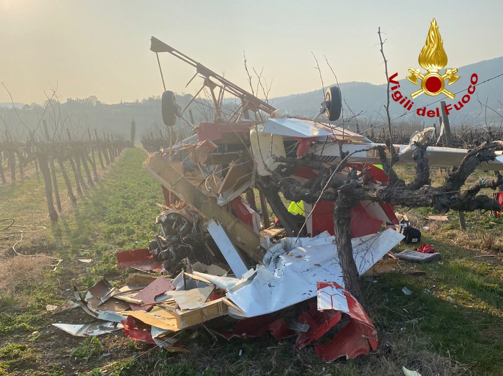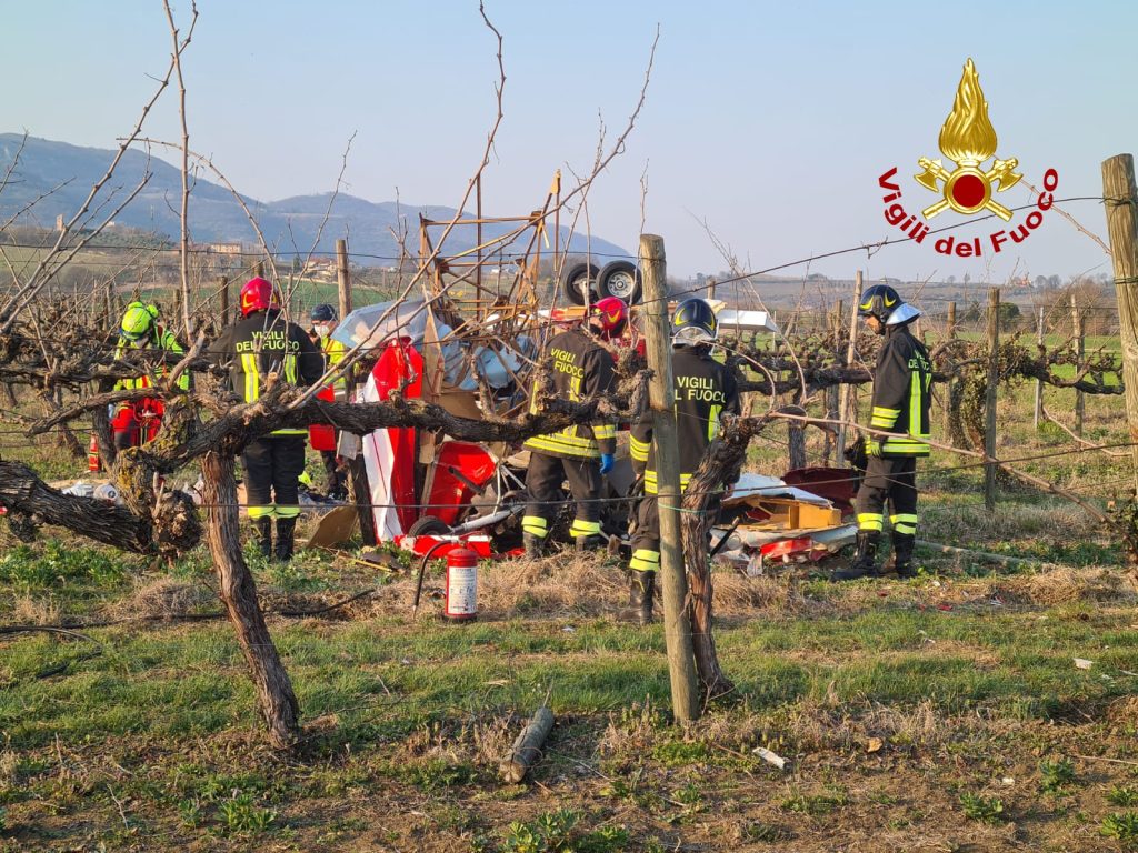Ultraleggero si schianta in un vigneto: morto il passeggero, gravissimo il pilota