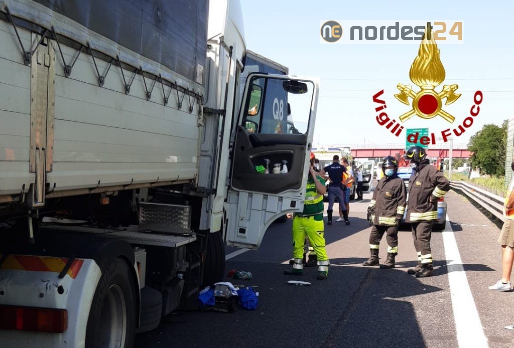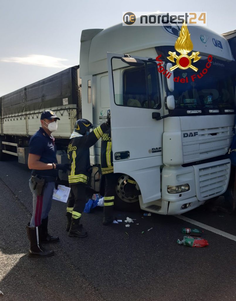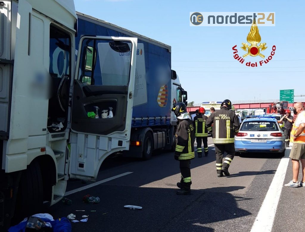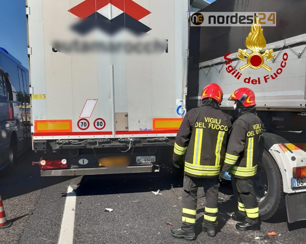 Un altro scontro tra 3 Tir in A4: autista incastrato e traffico in tilt