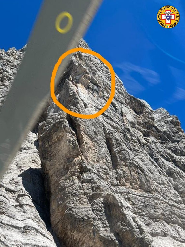 A staccarsi un pilastro della parete della Moiazza sud, a circa 2.400 metri di quota, vicino alla Via alpinistica Spigolo di destra. Verificata tutta la parte vicino alla ferrata, compresa la parte alta come ulteriore assicurazione, e il canale. Sì escludono coinvolti.