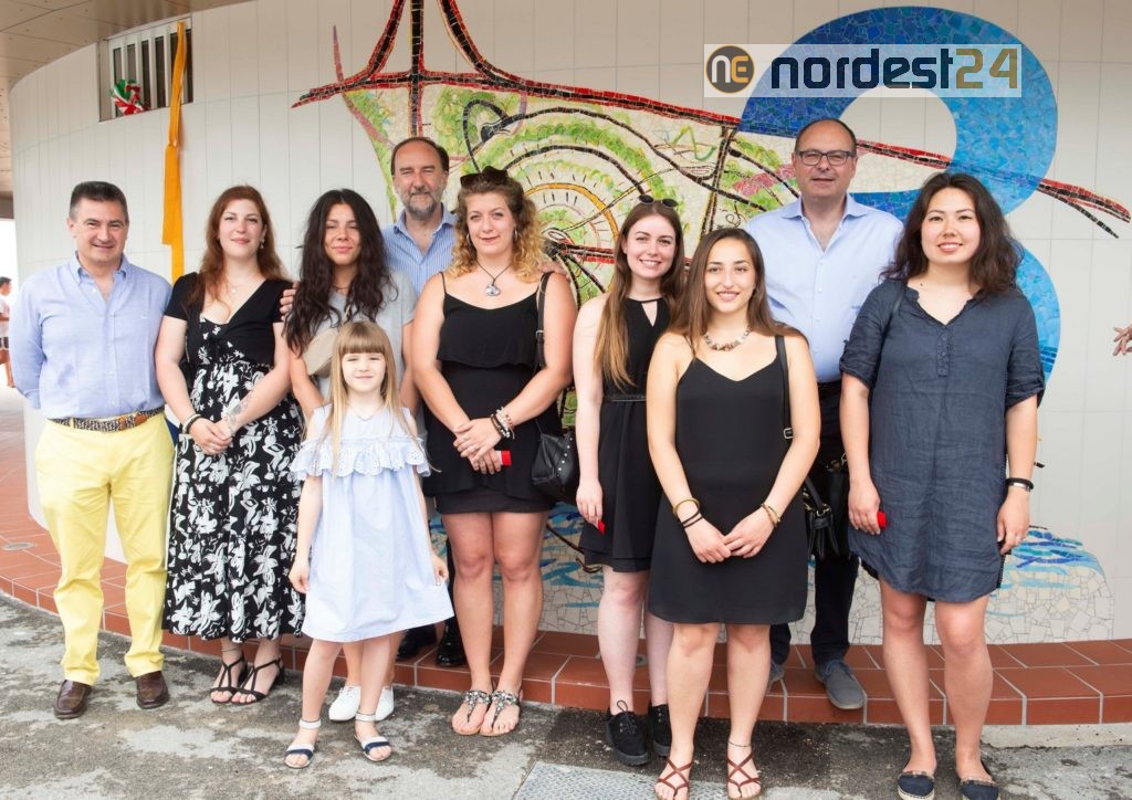 LIGNANO PINETA – La collaborazione fra la Scuola di Mosaico del Friuli con sede a Spilimbergo e la società Lignano Pineta, compie otto anni e anche per questa stagione estiva si concretizza con la realizzazione di un nuovo mosaico, questa volta all’ingresso del bagno 2 – bandiera tedesca, con un omaggio allo scultore e pittore, Luciano Ceschia.