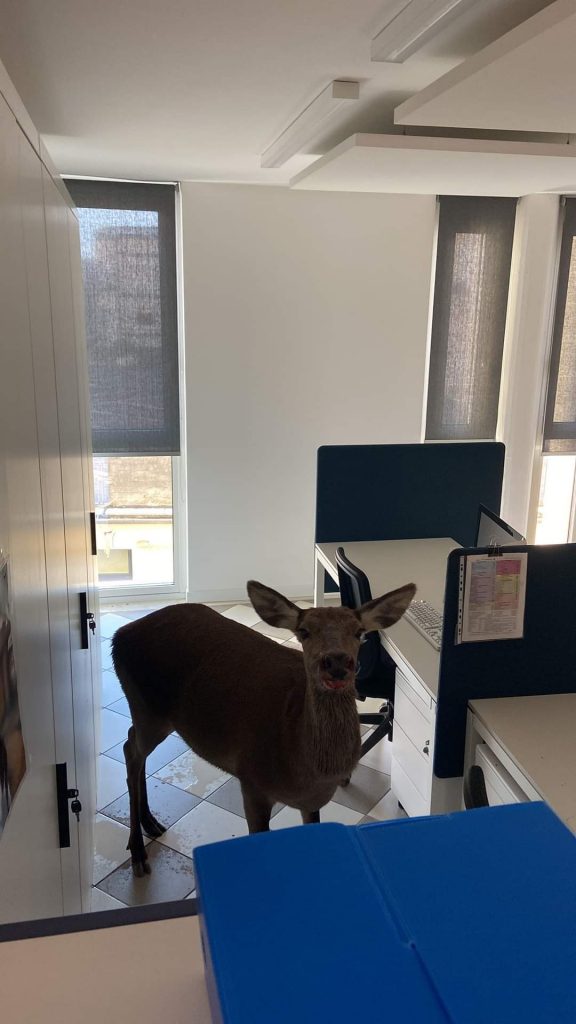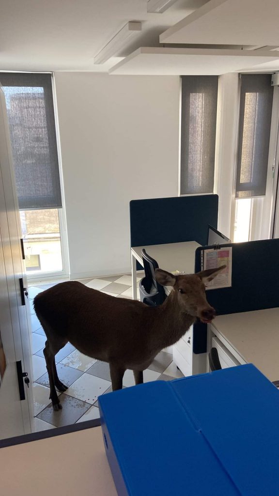 Una cerva finisce negli uffici del Comune di Valdobbiadene