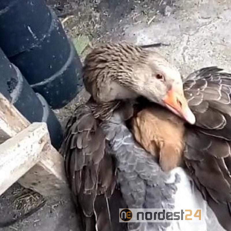 L'istinto materno di quest'oca è entrato immediatamente in azione quando ha visto il cucciolo. Il suo obiettivo è stato semplicemente proteggerlo da quel freddo pungente, che avrebbe potuto risultare letale se non fosse intervenuta.