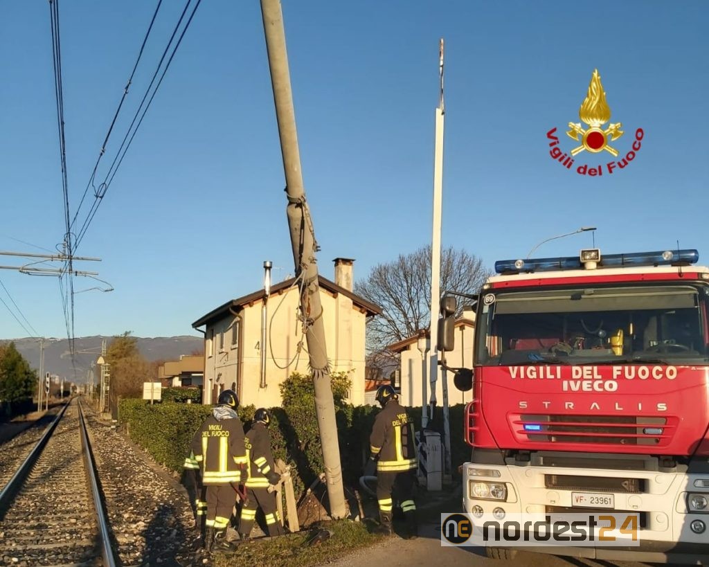 Urtano un palo che si piega e minaccia la linea ferroviaria