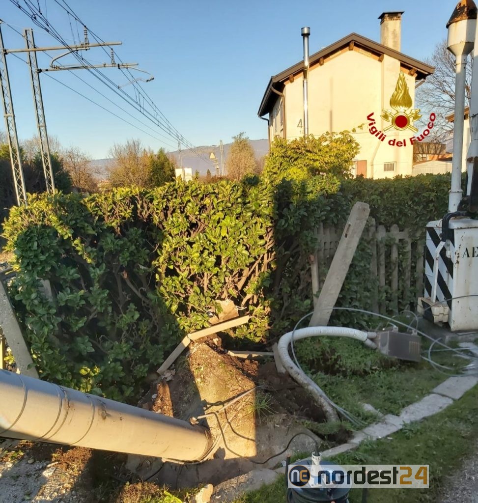 La squadra dei pompieri arrivata da Bassano del Grappa, ha provveduto al taglio del palo e al ripristino delle condizioni di sicurezza.