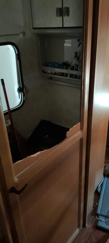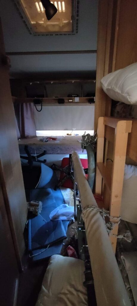 Non solo la roulotte era stata svuotata, ma anche le attrezzature erano state danneggiate o distrutte. Le roulotte, utilizzate come posti di comando mobili e dotate di attrezzature avanzate come radio professionali e sistemi informatici, ora mostrano i segni di una violenza gratuita. Finestre rotte, porte sfondate, tutto sembra irrecuperabile.