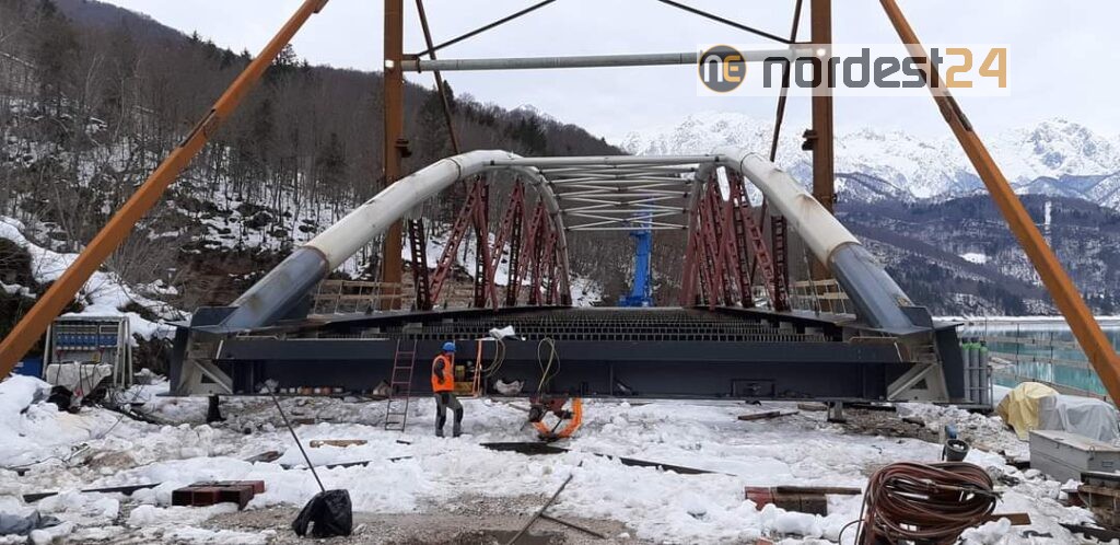 Il nuovo ponte in carpenteria metallica ad unica campata con tipologia ad arco lungo circa 78 metri, infatti, sta per essere varato completamente.
