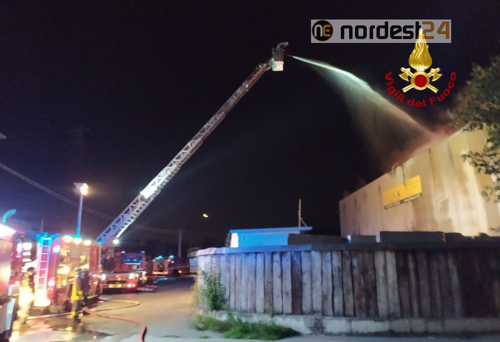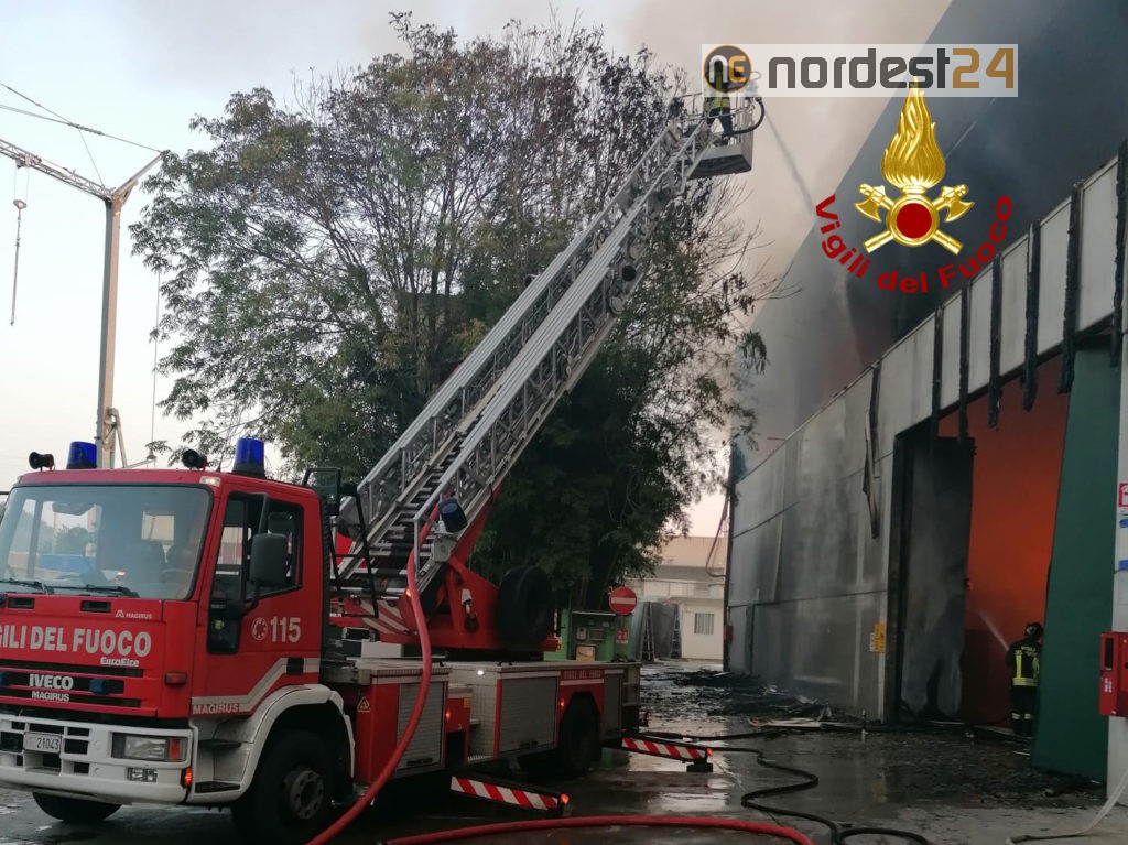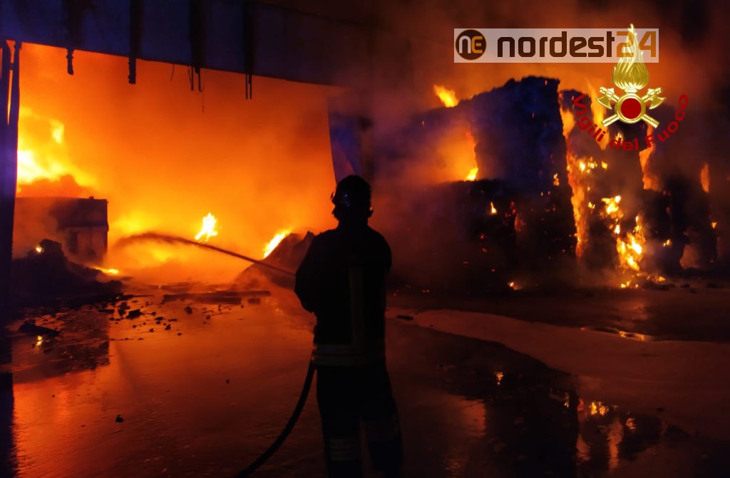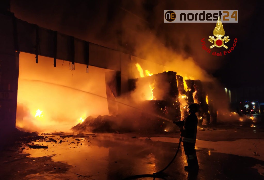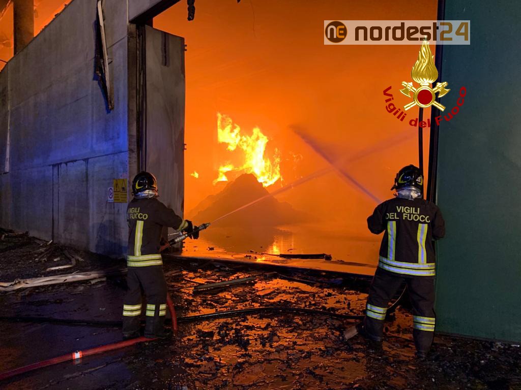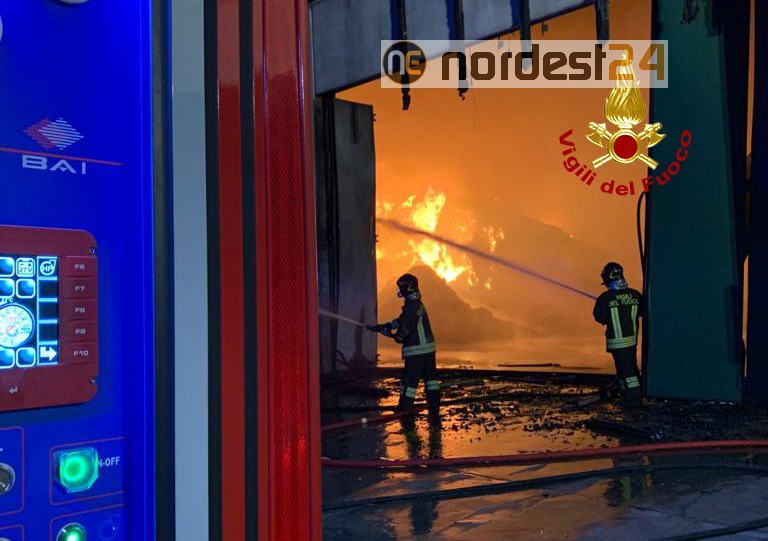Le squadre dei vigili del fuoco arrivate da Arzignano, Vicenza, Lonigo, Verona e i volontari Thiene con 5 autopompe, 3 autobotti, un’autoscala e 30 operatori, hanno iniziato le operazioni di spegnimento del rogo già generalizzato, che ha coinvolto una parte di capannone di circa 1200 mq con all’interno materiale secco.