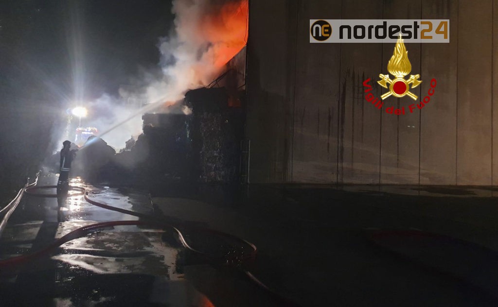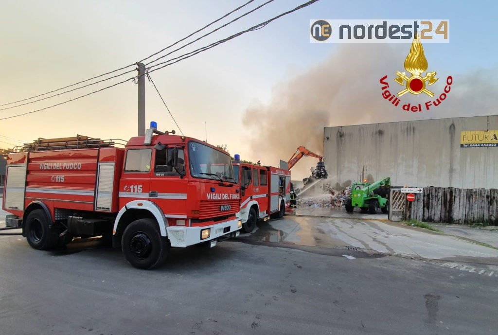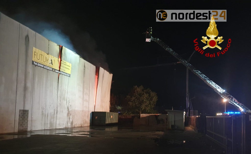 Dalle 1:16 della notte scorsa, i vigili del fuoco stanno operando per un vasto incendio divampato alla ditta di stoccaggio rifiuti “Futura S.r.l.” di via Lungo Chiampo a Montebello Vicentino.