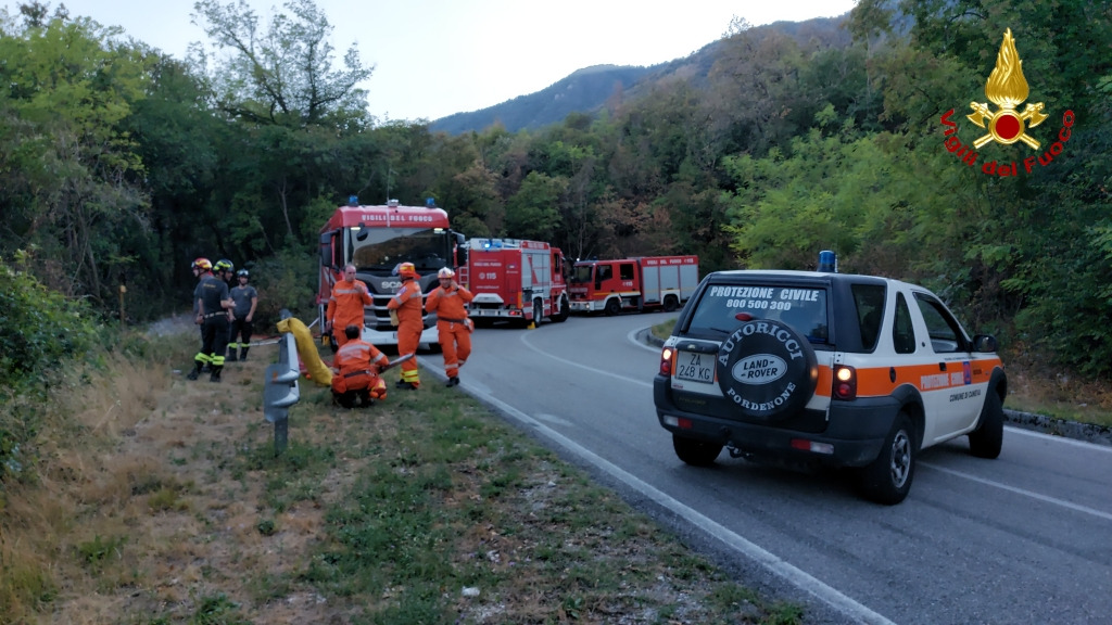 Viste le dimensioni dell’incendio e la possibilità di un avanzamento delle fiamme a monte della Strada Provinciale 29 i Vigili del fuoco sono intervenuti in forze inviando la squadra del distaccamento di Maniago, la squadra AIB (Antincendio Boschivo) della sede centrale di Pordenone, la squadra AIB del comando Vigili del fuoco di Udine e un ulteriore squadra giunta dal distaccamento VVF di Vittorio Veneto (TV) supportate da due autobotti il funzionario di guardia e l’autofurgone UCL (Unità Crisi Locale) giunti dalla sede centrale di Pordenone.