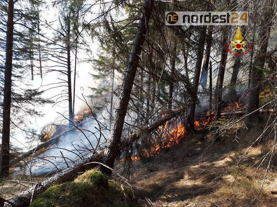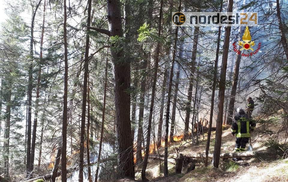 Sul posto anche personale dei servizi forestali che hanno operato con un elicottero.