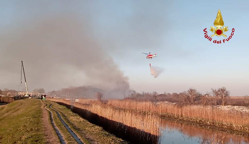 Dalle 16:00, i vigili del fuoco stanno operando lungo l’argine in località Campalto di Venezia poco distante dall’aeroporto Marco Polo, per un vasto incendio sterpaglia. I pompieri intervenuti da Mestre con un’autopompa, un’autobotte, un modulo antincendio boschivo e 9 operatori, hanno iniziato le operazioni di spegnimento.