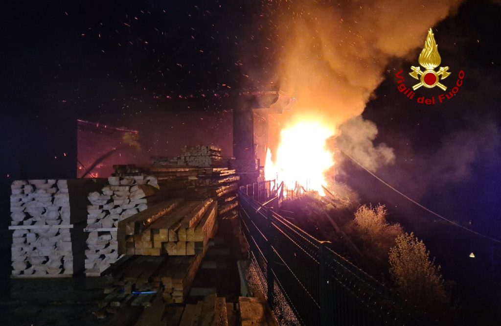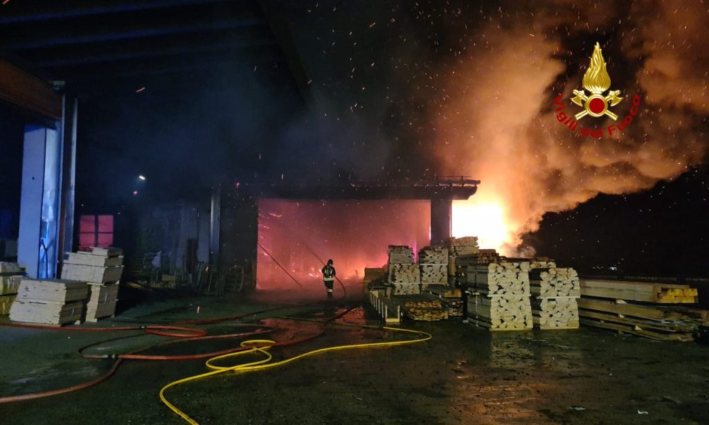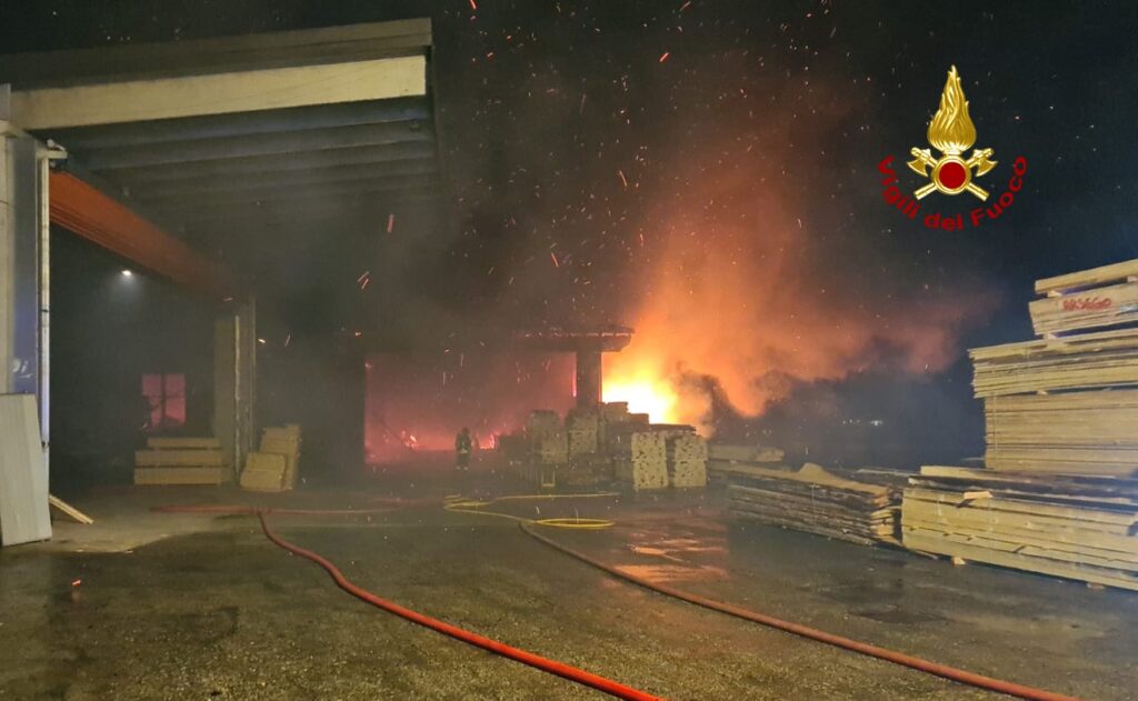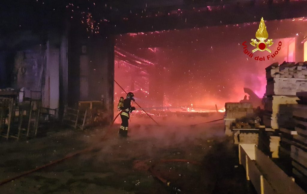 Vasto incendio distrugge una falegnameria: nessun ferito, danni ingenti