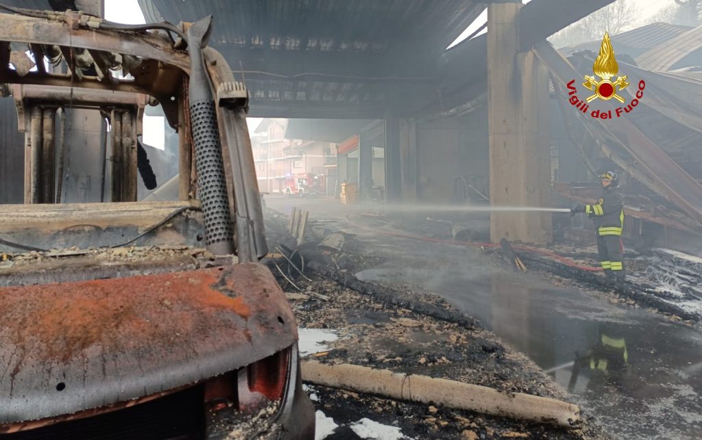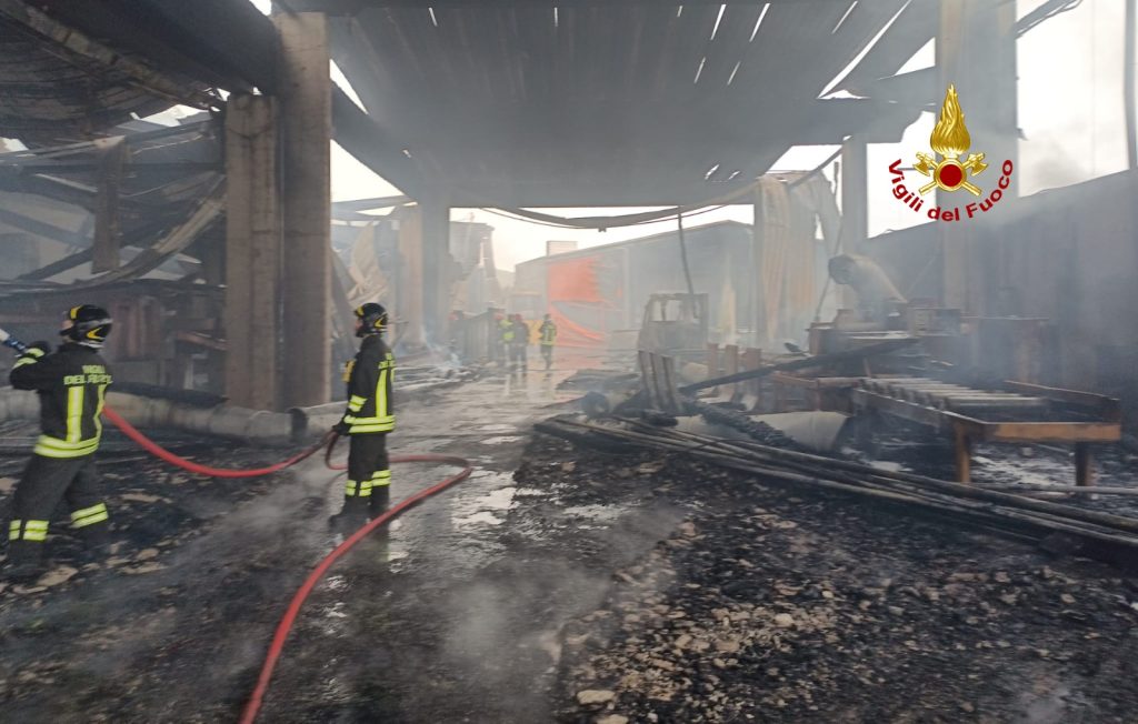 Dopo circa due ore le squadre sono riuscite a circoscrivere il rogo. Bruciato oltre il legname presente i macchinari di lavorazione, e alcuni muletti. Parte della struttura è collassata. Sono ora in corso le operazioni di bonifica, che proseguiranno presumibilmente per gran parte della giornata di oggi.