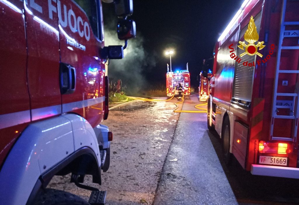 Le cause del rogo sono al vaglio dei tecnici dei vigili del fuoco. Le operazioni di bonifica eseguite anche con l’ausilio di escavatori proseguiranno presumibilmente per tutta la giornata di oggi.