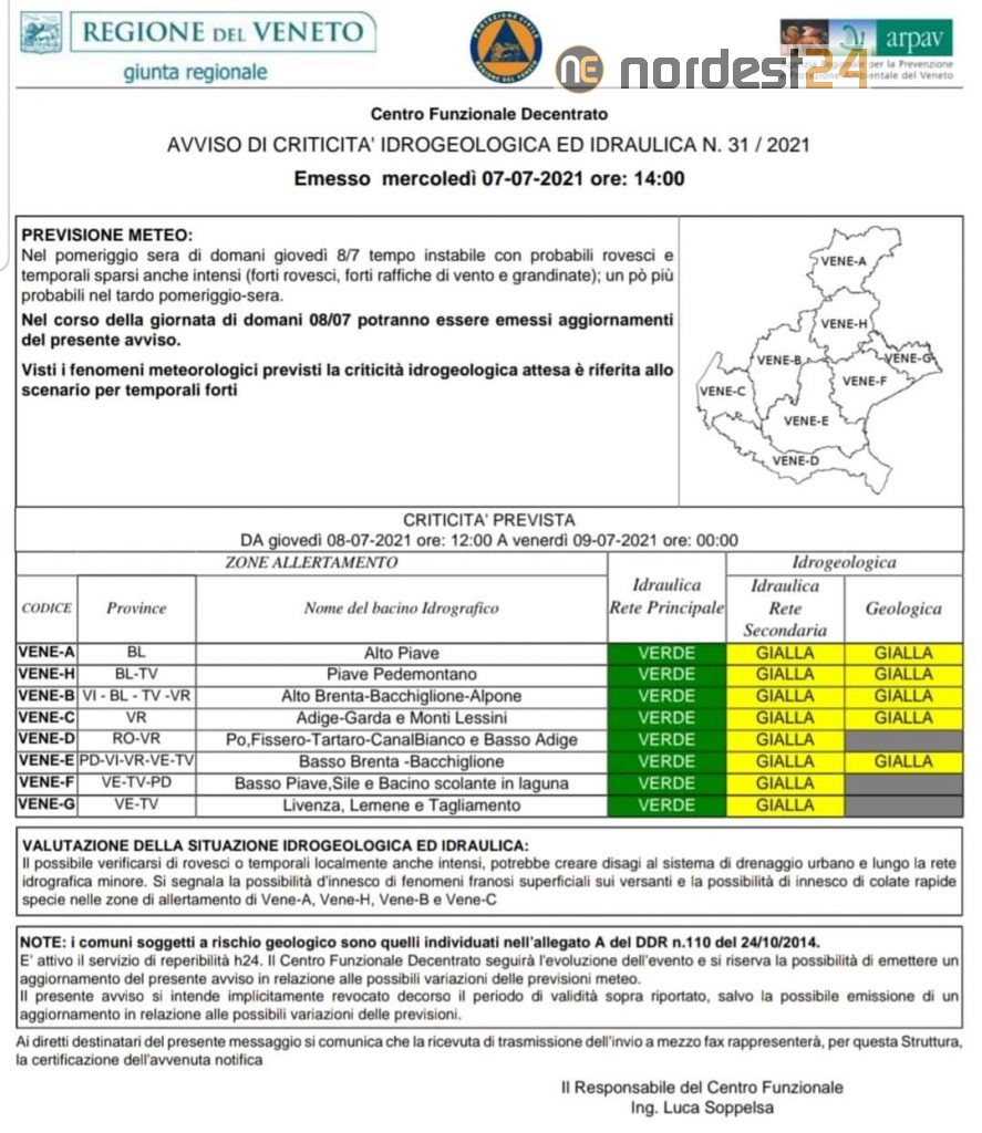 Le previsioni meteorologiche per il Veneto segnalano nel pomeriggio e sera di domani, giovedì 8 luglio, tempo instabile con probabili rovesci e temporali sparsi anche intensi. I fenomeni sono più prob...