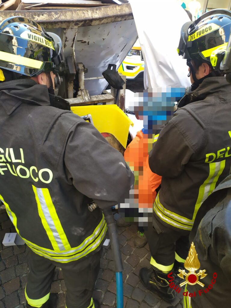 Martedì mattina, 22 agosto 2023, i vigili del fuoco sono intervenuti in Corso Palladio a Vicenza per soccorrere l’autista di un piccolo compattatore della carta rimasto incastrato con la mano nel sistema di sollevamento del bidone.